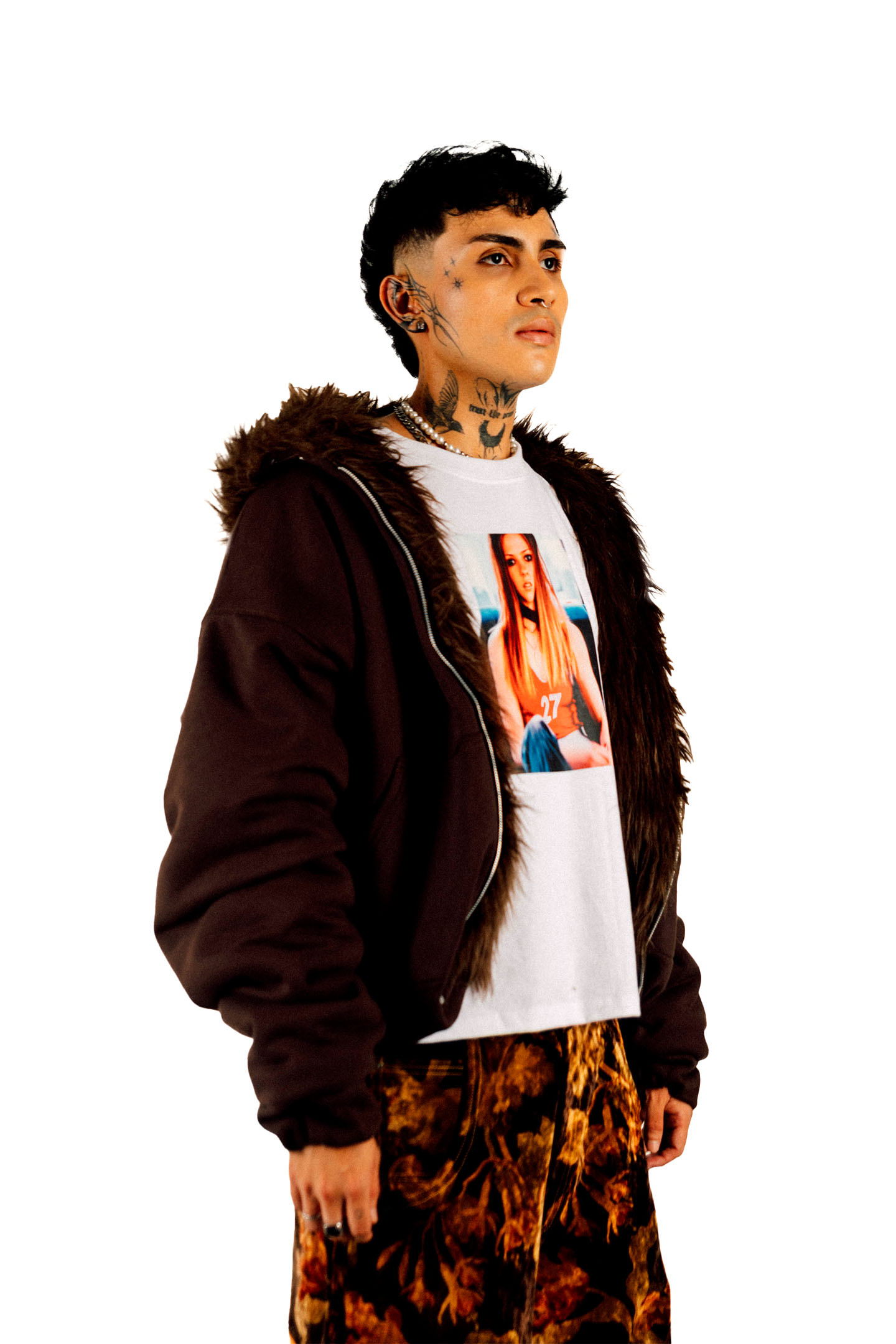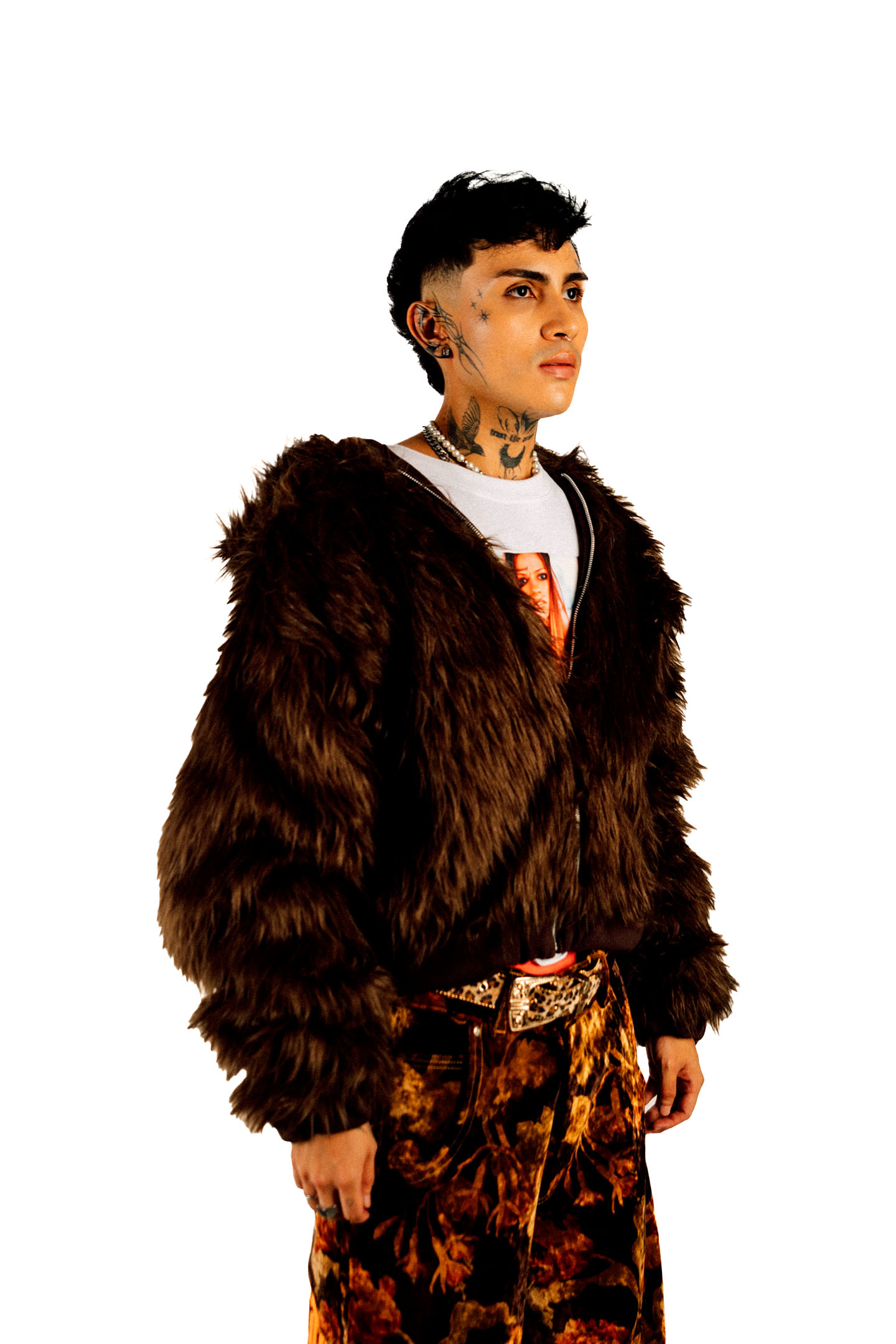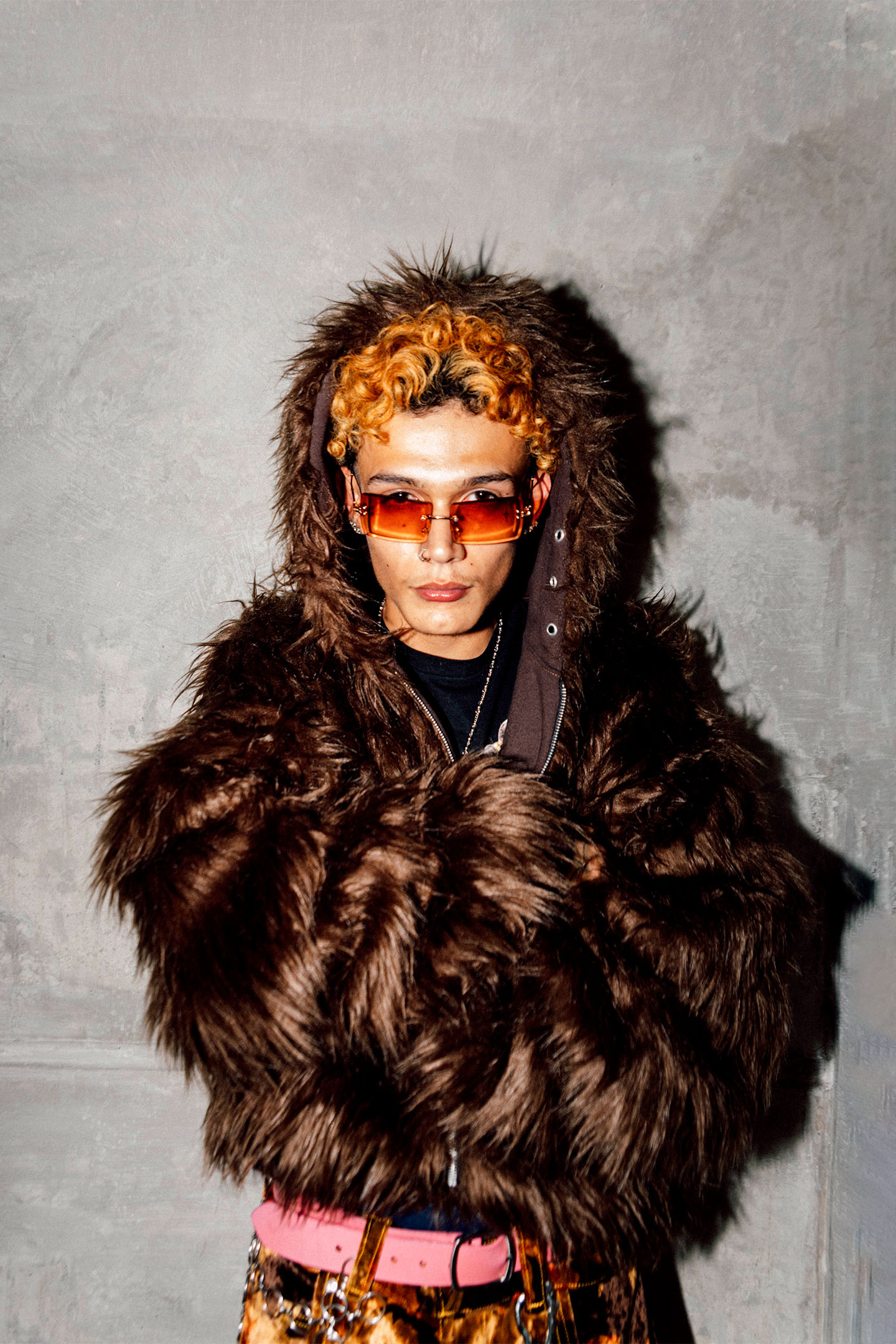 Hoodie reversible de peluche con pelaje largo, pretina y puños con elástico interno y zipper. Posee sisas bajas.