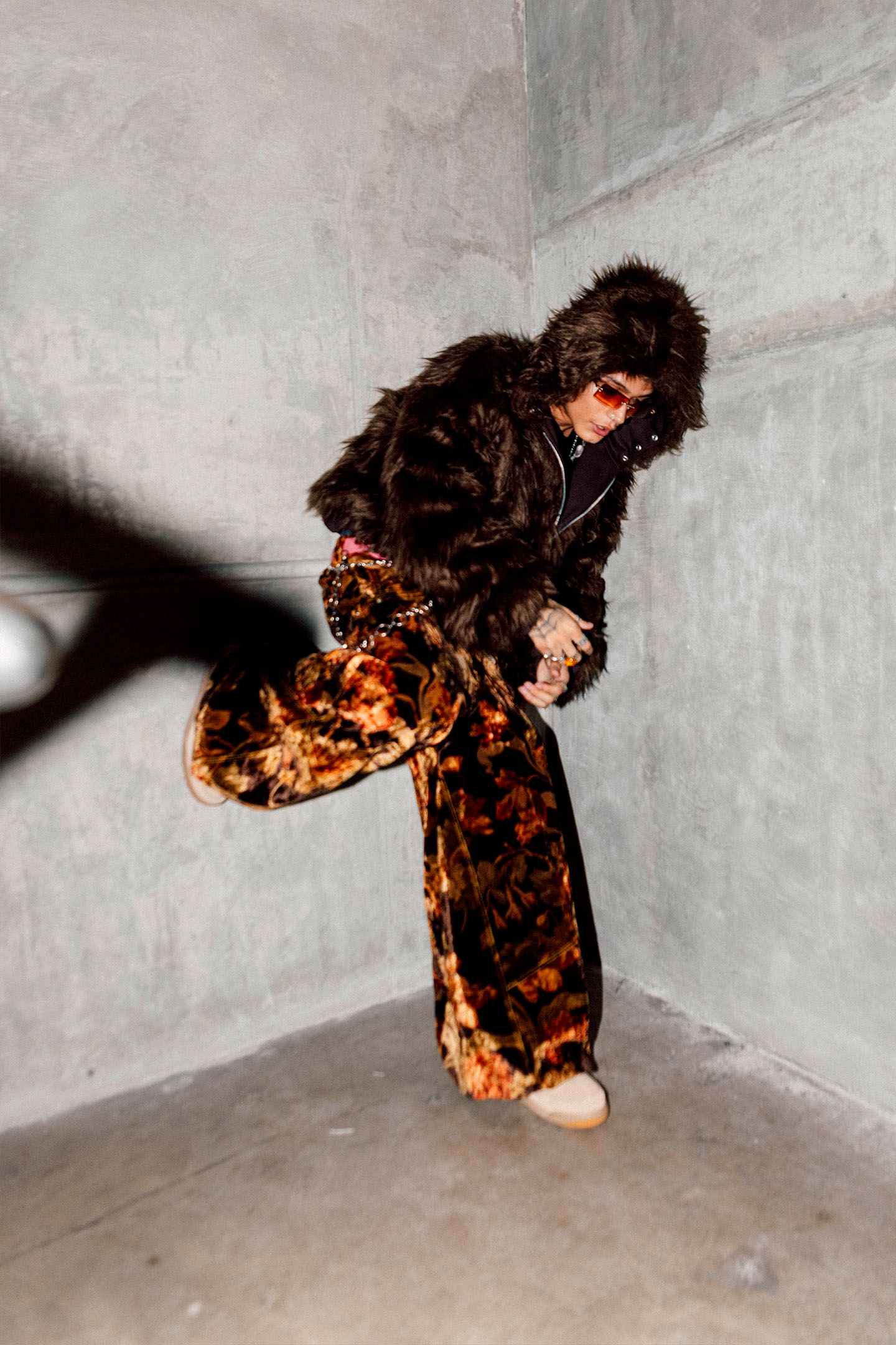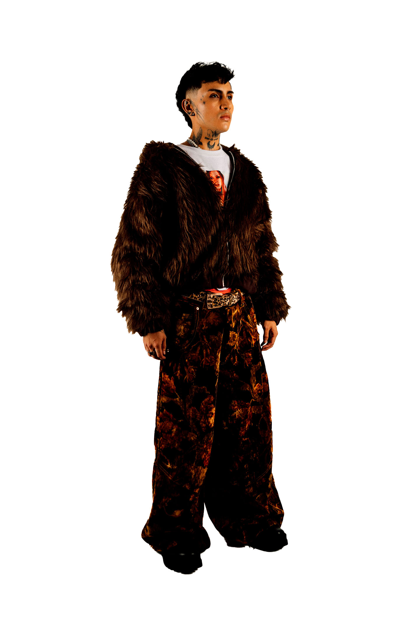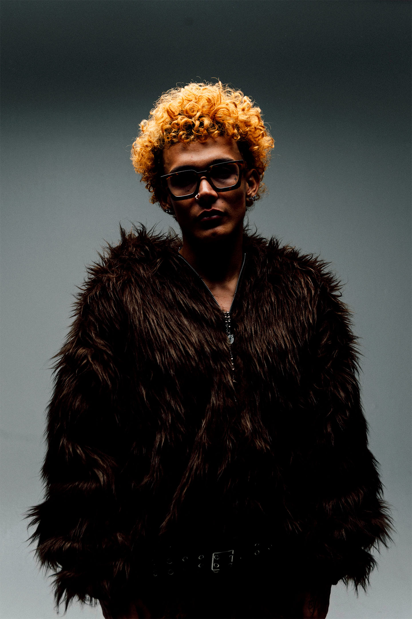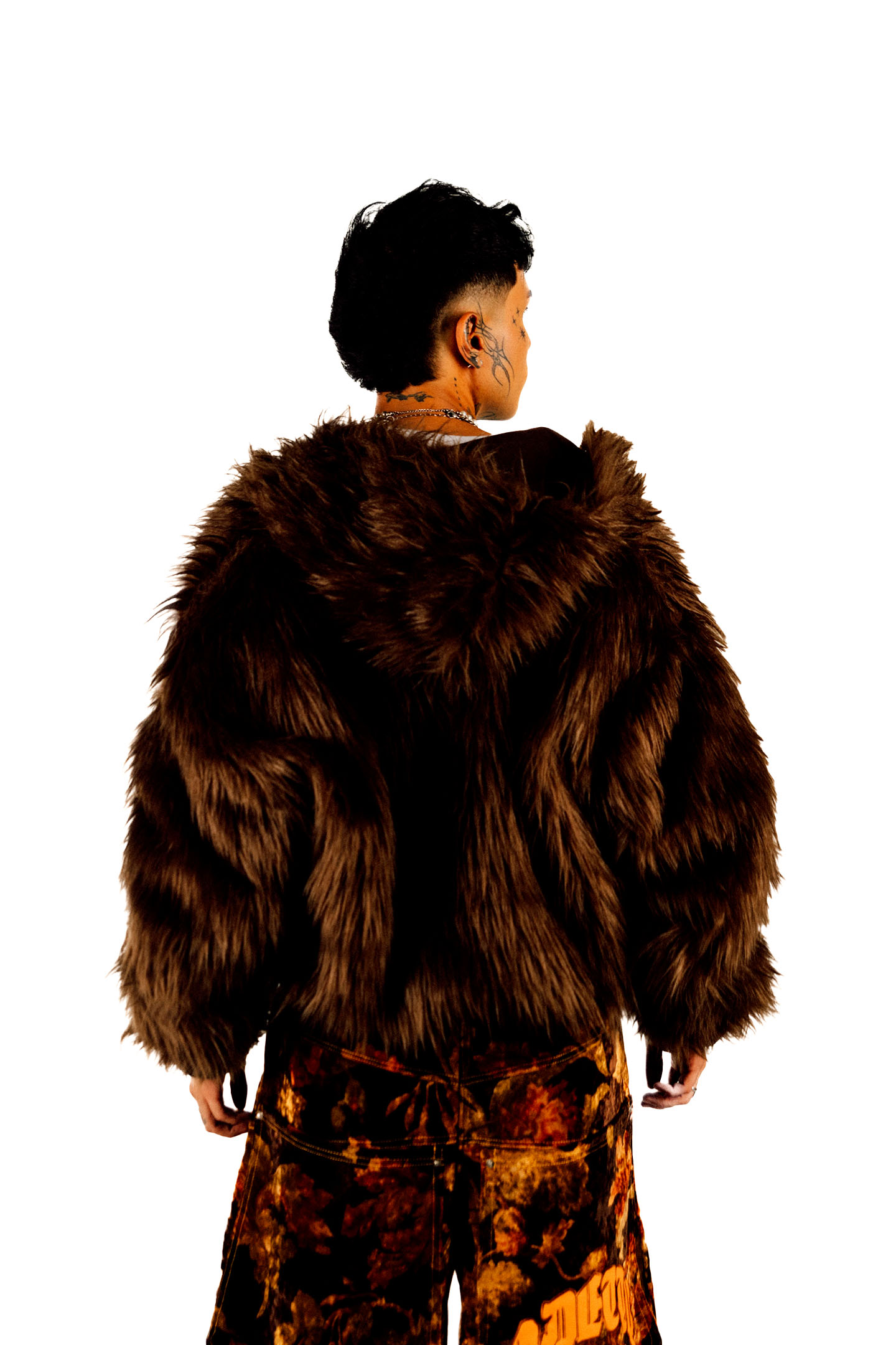 Hoodie reversible de peluche con pelaje largo, pretina y puños con elástico interno y zipper. Posee sisas bajas.